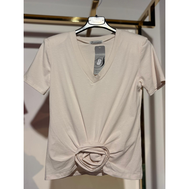 T-SHIRT Z RÓŻĄ ŚMIETANKA