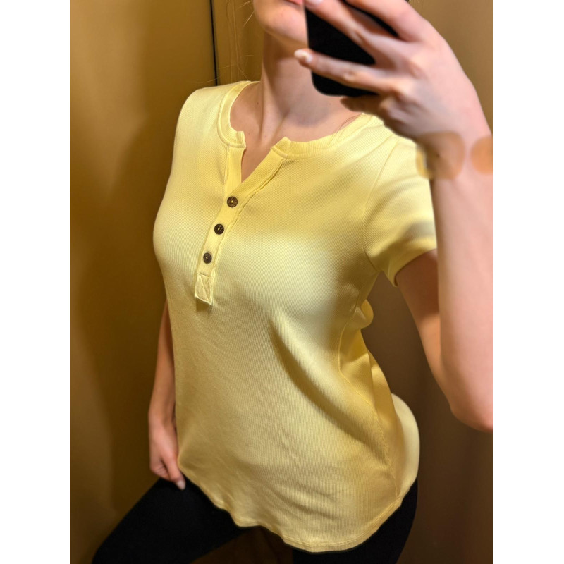 T-SHIRT Z GUZIKAMI ŻÓŁTY