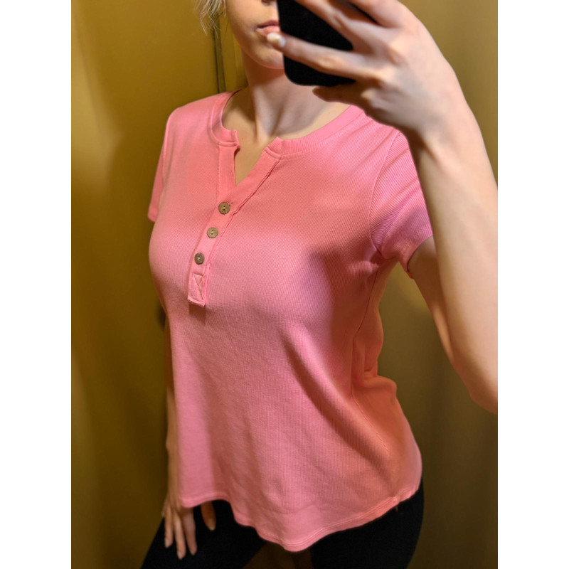T-SHIRT Z GUZIKAMI RÓŻ