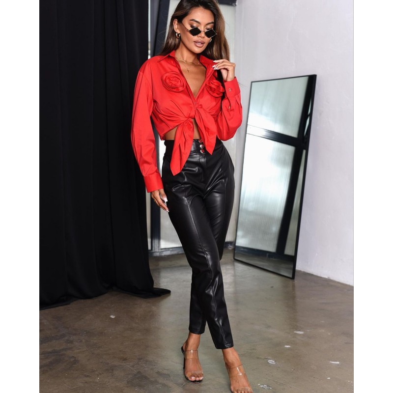 BLUZKA Z OZDOBNYMI RĘKAWKAMI- CZERWONA