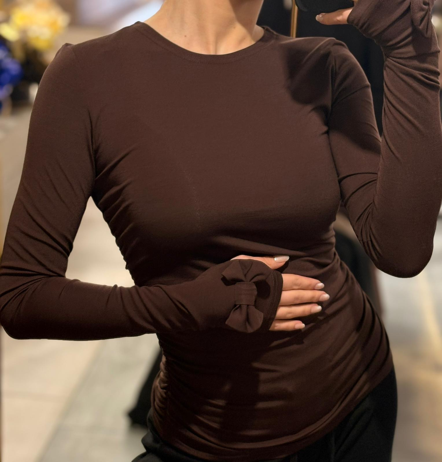 BLUZKA Z KOKARDKAMI CZEKOLADA