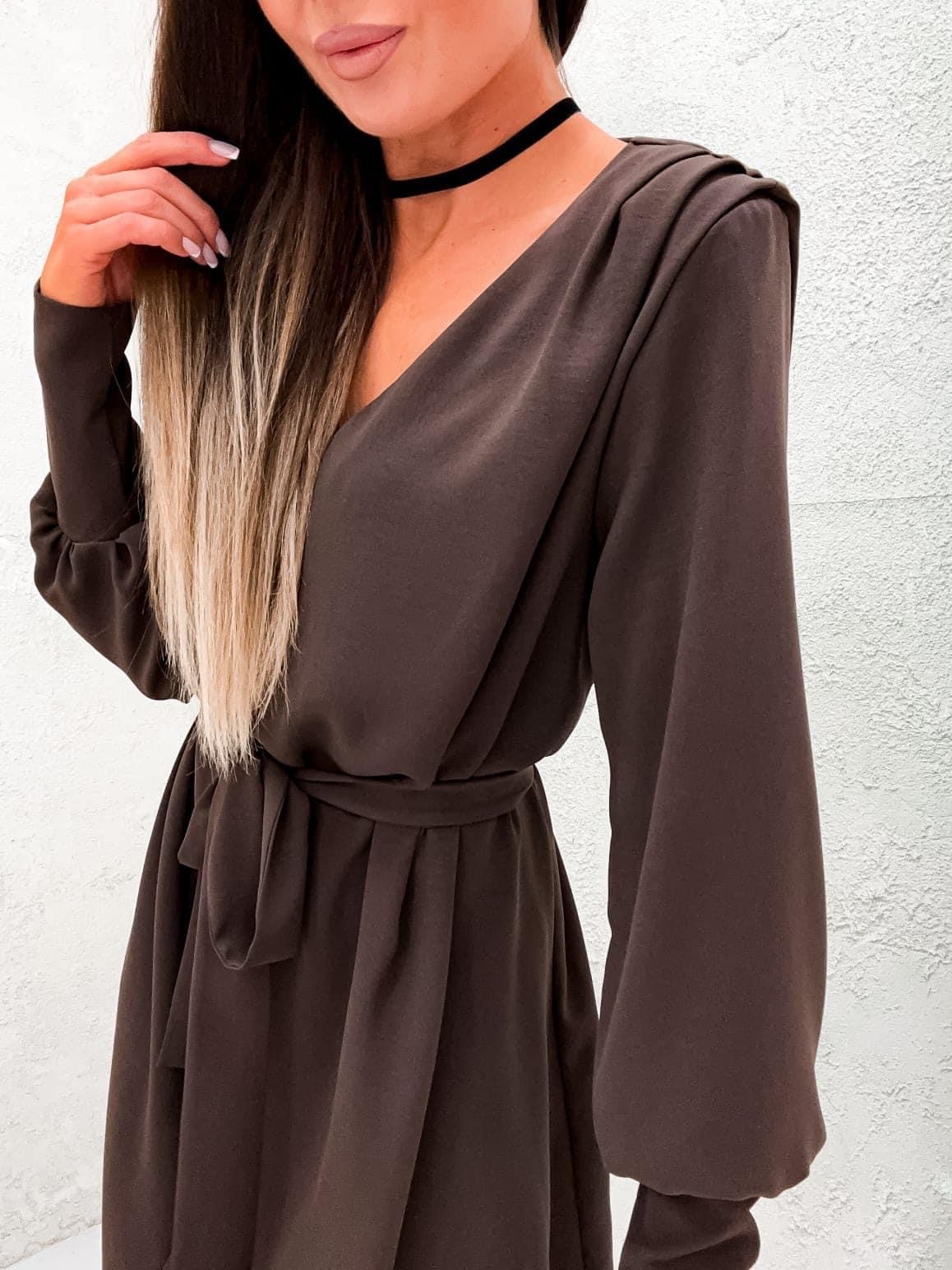 SUKIENKA WIĄZANA W PASIE- CZEKOLADA