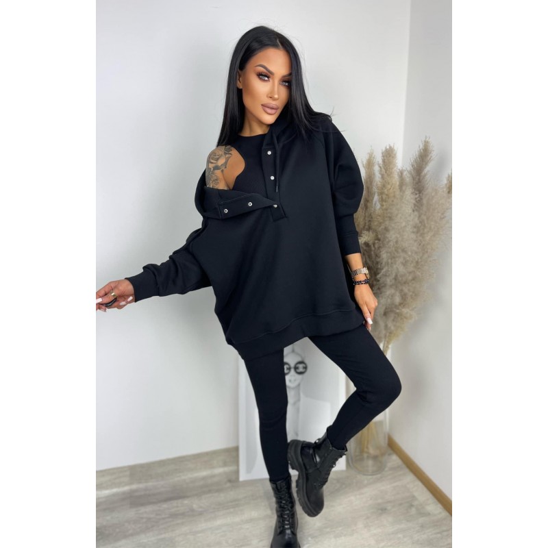 Komplet dresowy to propozycja idealna do wygodnych looków. W skład zestawu wchodzi prążkowany top, bluza z kapturem o oversizowym kroju oraz legginsy z wysokim stanem. To propozycja, która zaprezentuje się fenomenalnie jako set, a także osobno.