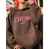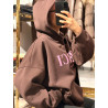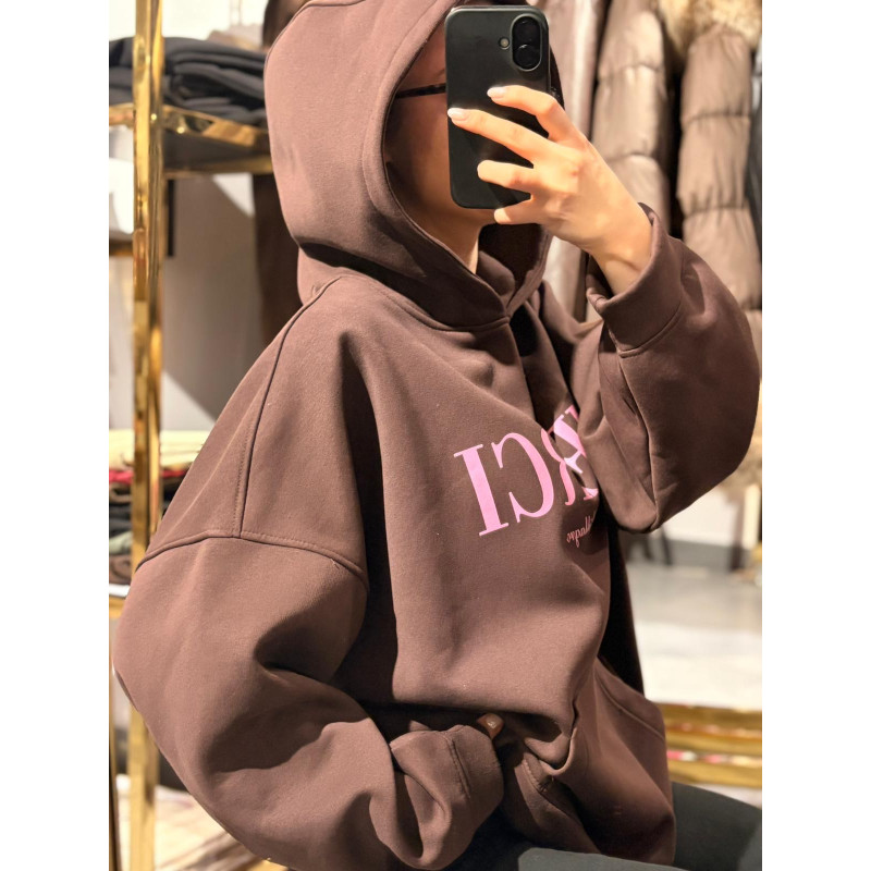 logo marki z przodu w kolorze różowym, bardzo ciepła i komfortowa w noszeniu