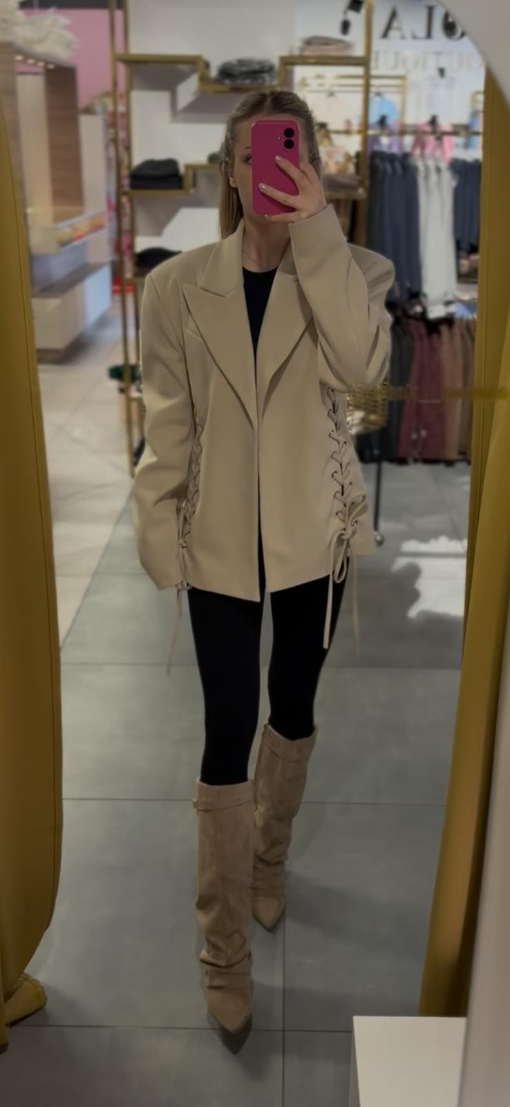 Marynarka lamilla w kolorze beżu ze zdobieniami