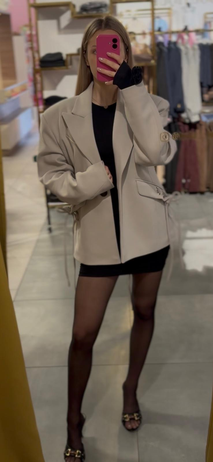 ze zdobieniem po bokach na kieszeniach w postaci sznurków które można wiązać