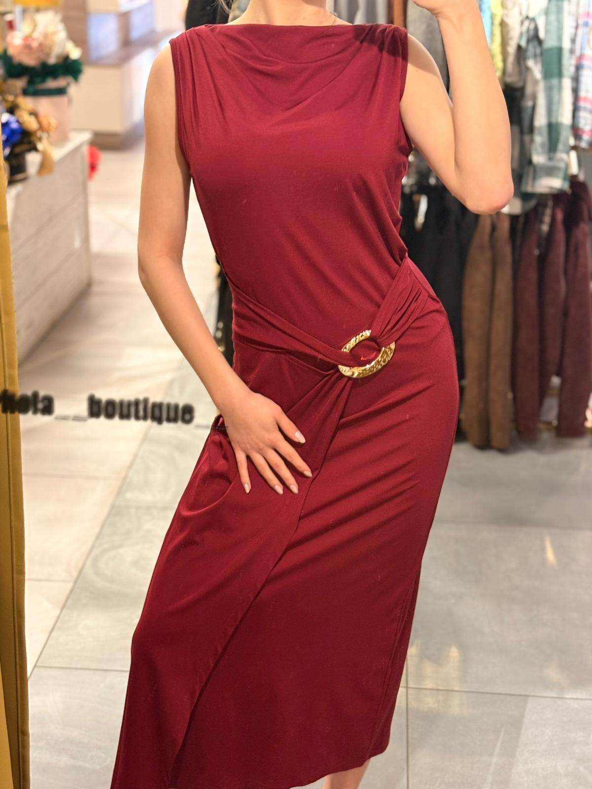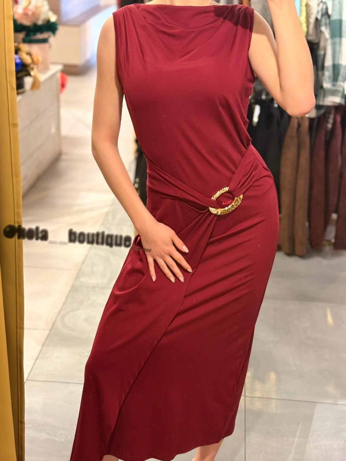 Sukienka długa czerwona z ozdobnym wiązaniem w pasie