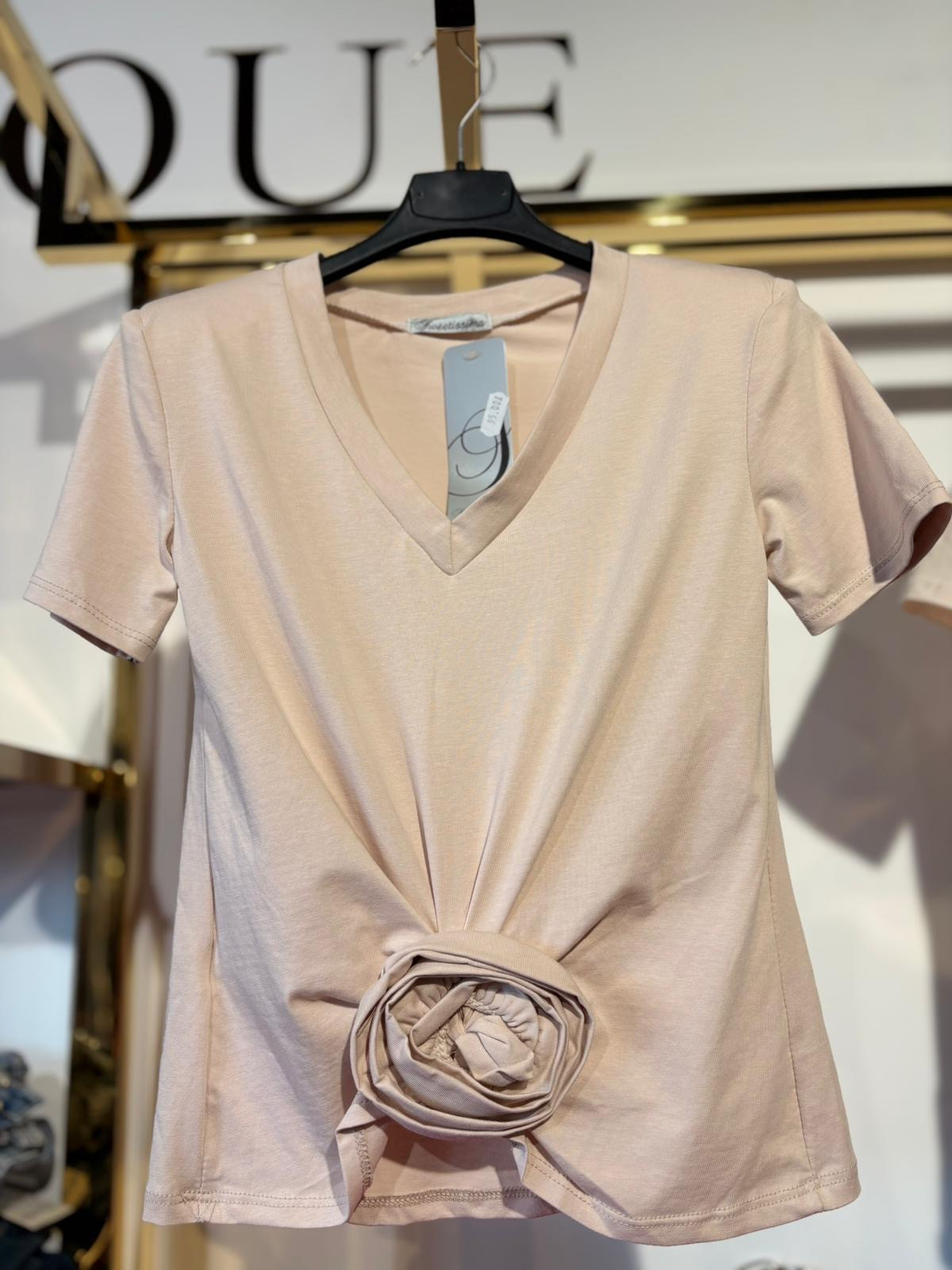 T-SHIRT Z RÓŻĄ BEŻ