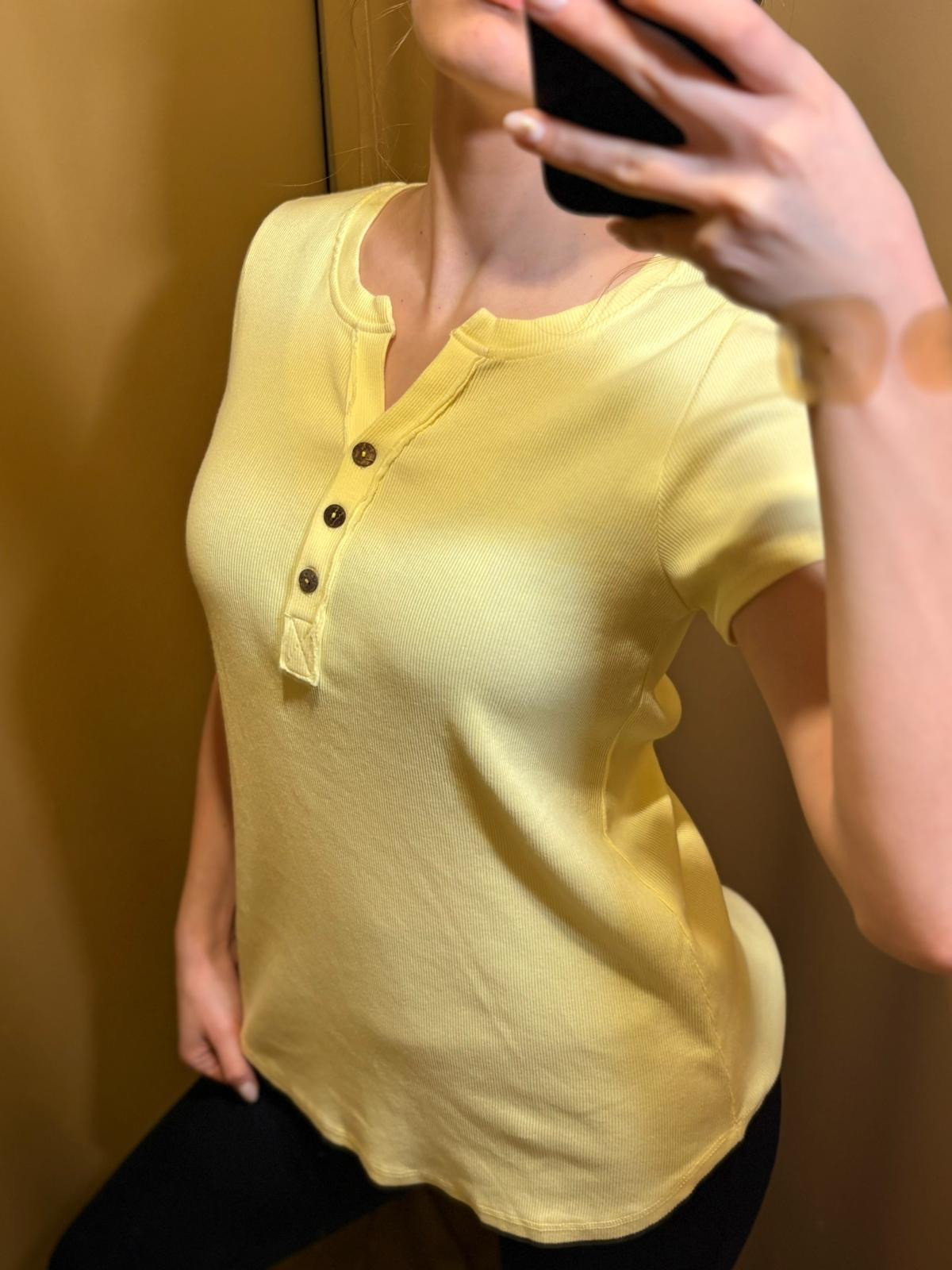 T-shirt z ozdobnymi guzikami przy dekolcie