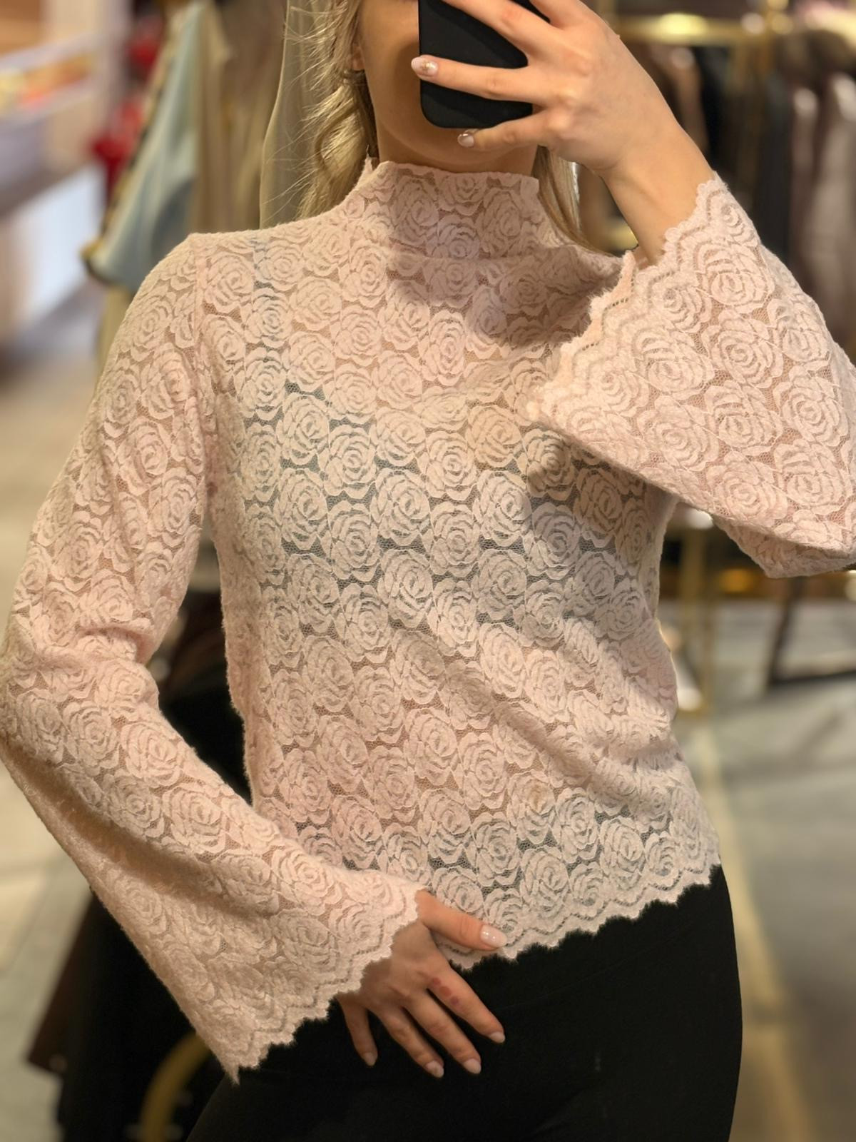 lekko przeźroczystego, posiada również lekko rozszerzane rękawy,