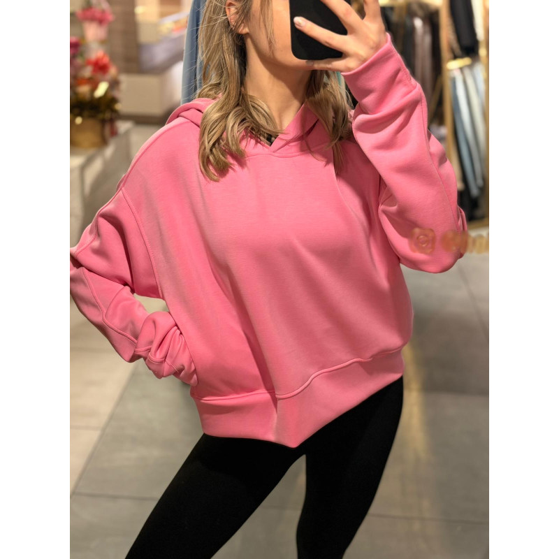 Miękka pastelowa bluza w odcieniu różu z kapturem oraz kieszeniami