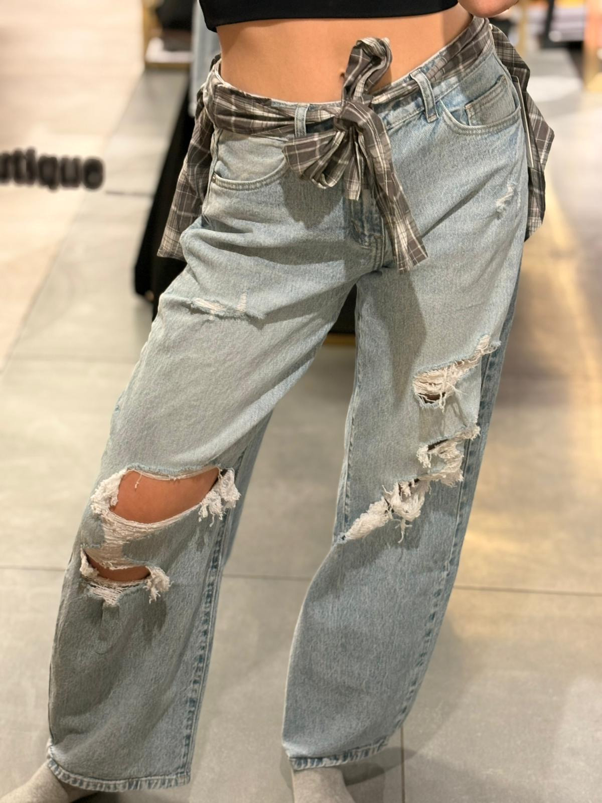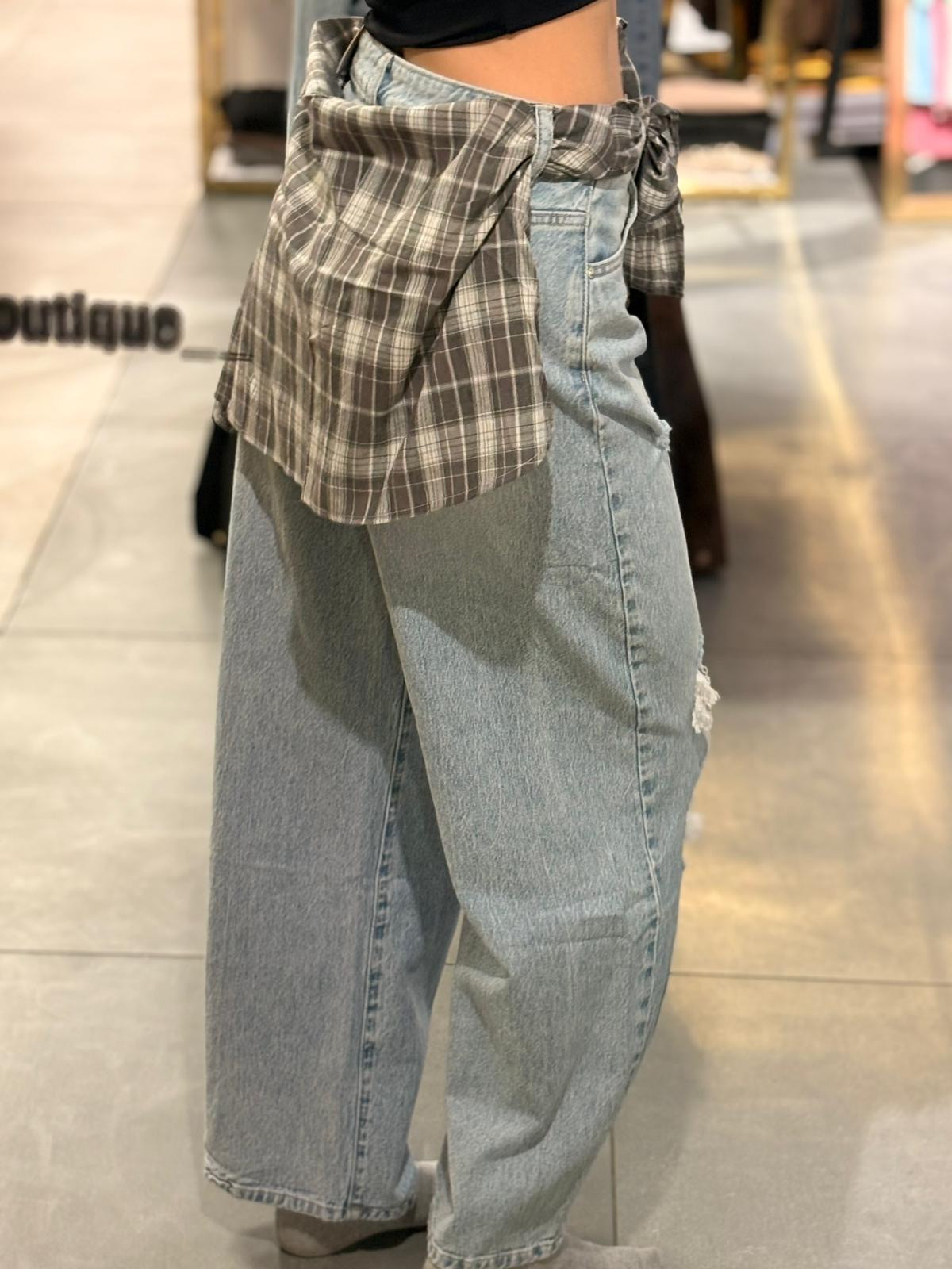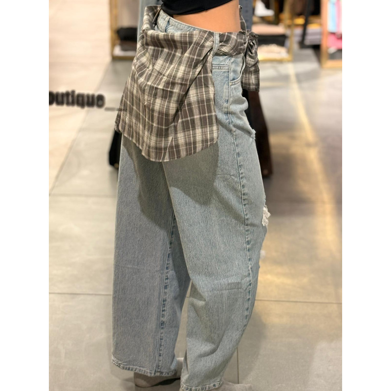JEANSY z dziurami oraz kawałkiem koszuli